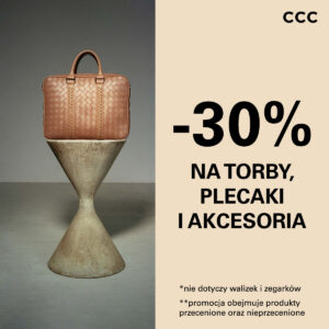 Tylko teraz -30% na najmodniejsze torby i wybrane stylowe akcesoria! Przyjdź do CCC i zakochaj się w zniżce prosto z serca.