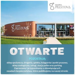 Przypominamy o tym, że pozostajemy dla Was częściowo otwarci. Zachęcamy do zapoznania się z obecnymi promocjami: https://galeriapiastova.pl/promocje/