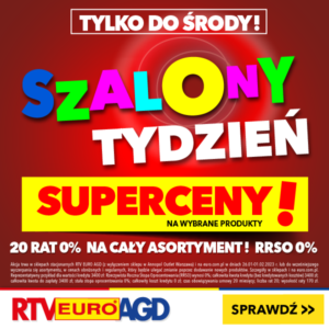 Szalony tydzień SUPERCENY! 20 RAT 0% na cały asortyment! RRSO O%. Sprawdź w sklepach Euro lub na euro.com.pl.
